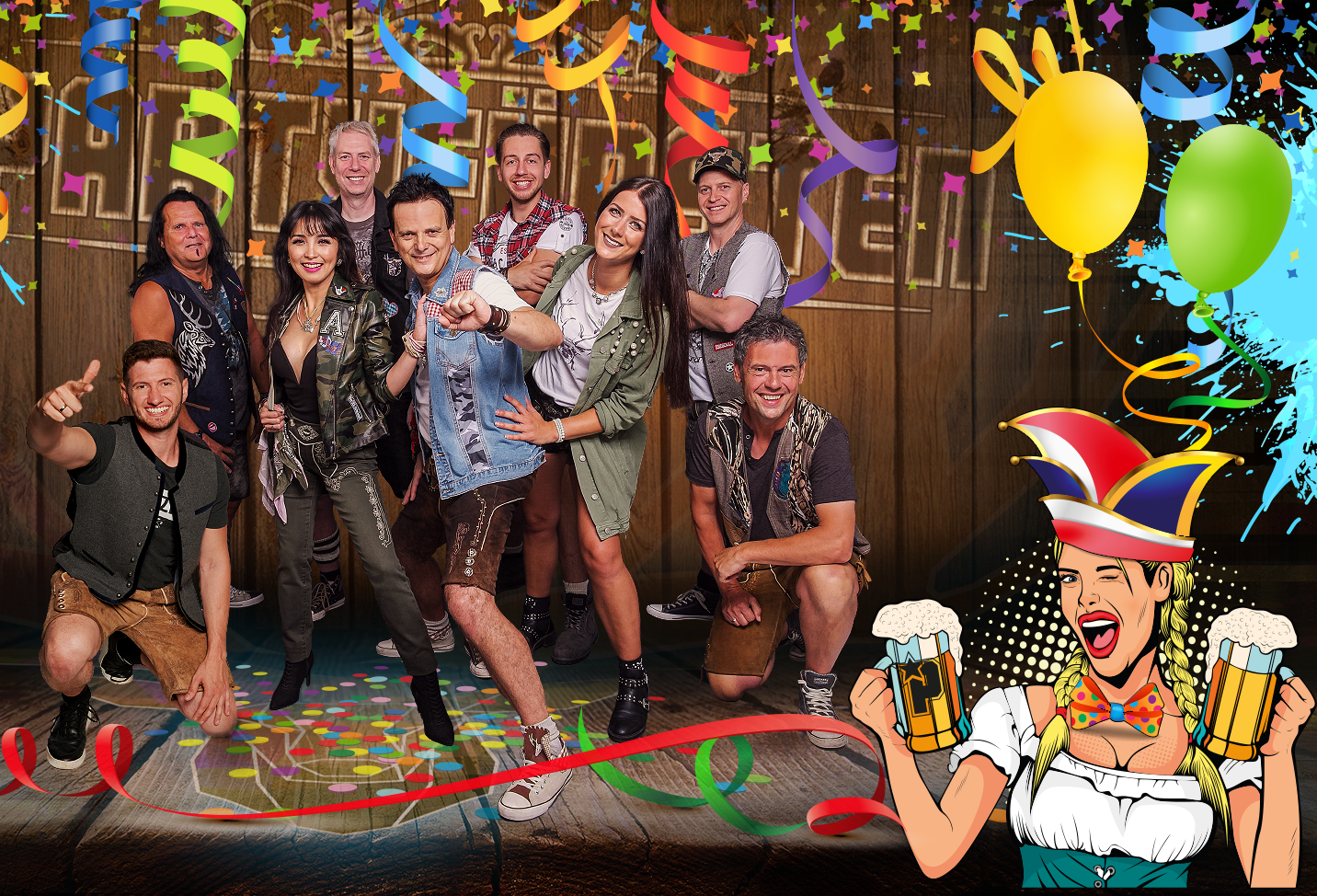 Songs von. ABBA, Bon Jovi, AC/DC, Helene Fischer,Coldplay, DJ Robin, Mia Julia, Die Toten Hosen, Andrea Berg, VanHalen, Jan Delay, Helene Fischer, Andreas Gabalier, Queen, Voxxclub, Udo Jürgens, Schürzenjäger, Avicii, Troglauer, Mickie Krause, DJ Ötzi, Corona, Wolfgang Petry, PUR, Wanda Jackson, Kid Rock, Spider Murphy Gang, Swedish House Mafia, Honk!, Irene Cara, Journey, Joan Jett, Robbie Williams, u.v.m